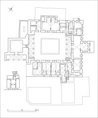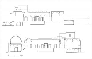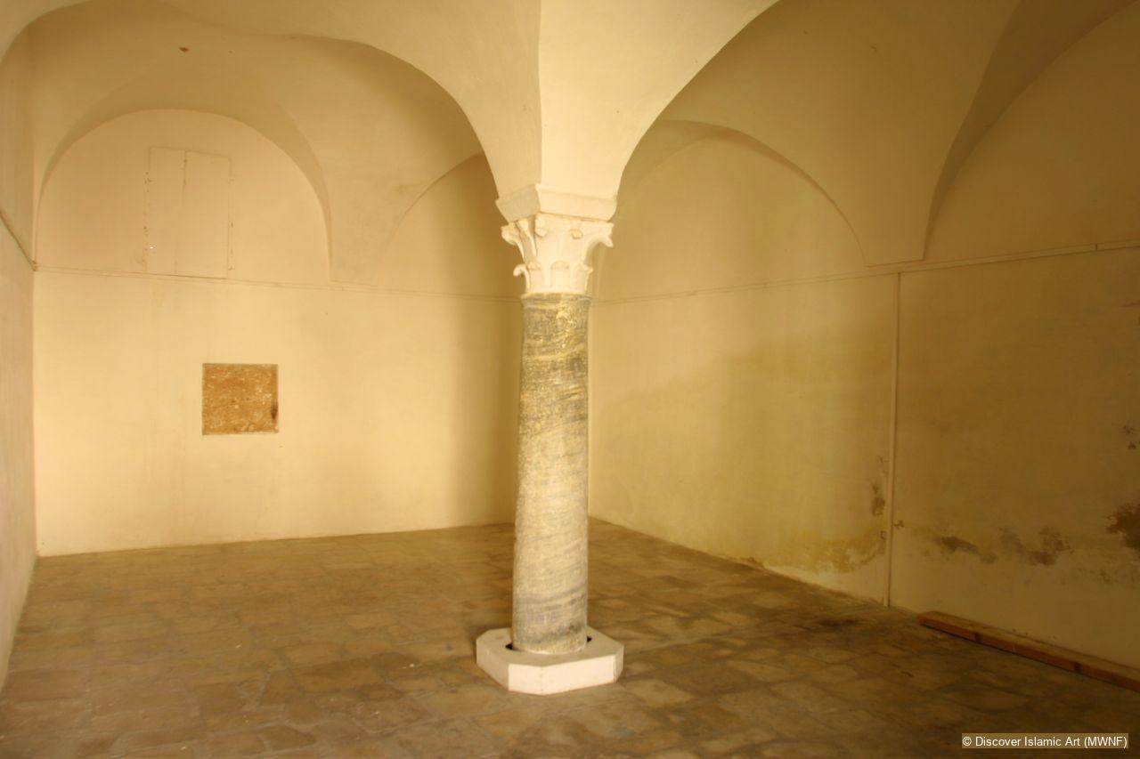 The apartments are built on the ground floor area covered with arches reinforced by arch-beams, thick pillars and partition walls of rubble and stone. These are provisions stores and a guard room, followed by stables positioned between two service courtyards. Access to these annexe spaces is via a separate entrance on the other side of the building opposite the main entrance. On the northwest side of the ground floor there is a projection from the main building that is a room roofed with vaults and mainly open to the outside. It was a maqad or siesta room.
