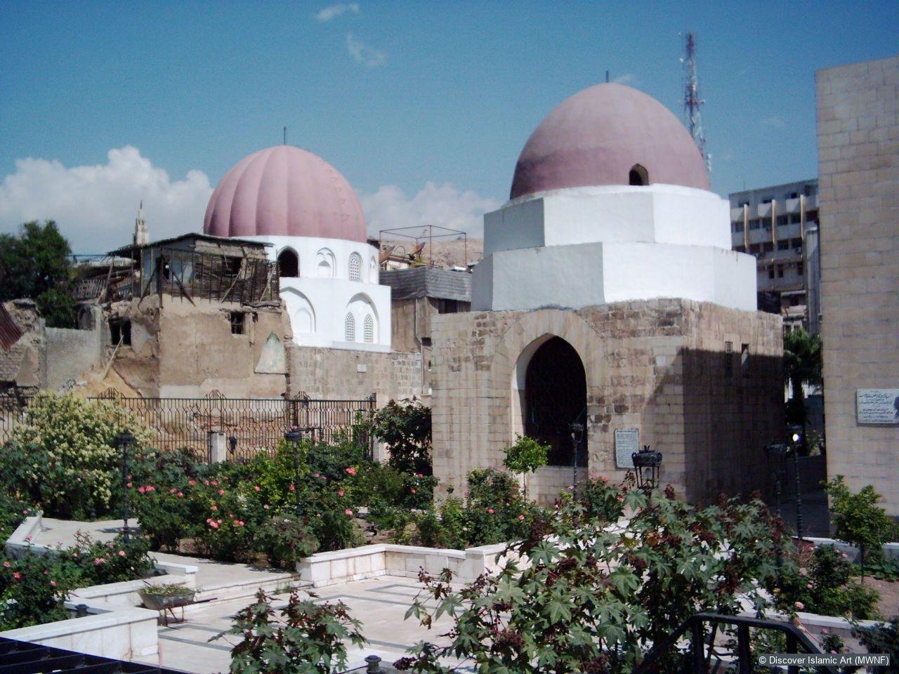 Three inscribed tombs rest here, still in their original condition and orientation, and very well preserved. The northernmost tomb nearest the entrance, carries Sitt al-Sham (d. AH 616 / AD 1220) and her son Husam al-Din Lagin (d. AH 587 / AD 1191). The middle tomb carries Nasir al-Din b. Shirkuh, ruler of Homs (d. AH 581 / AD 1185-6), who was Sitt al-Sham's first cousin and second husband. The third tomb belongs to her brother, the ruler of Yemen, al-Mu'azzam Turan Shah (d. AH 576 / AD 1180) who was transferred to Damascus for burial in AH 582 / AD 1185. The wealth of attention given to this tomb chamber indicates the important position held by the Lady of Damascus and her family.