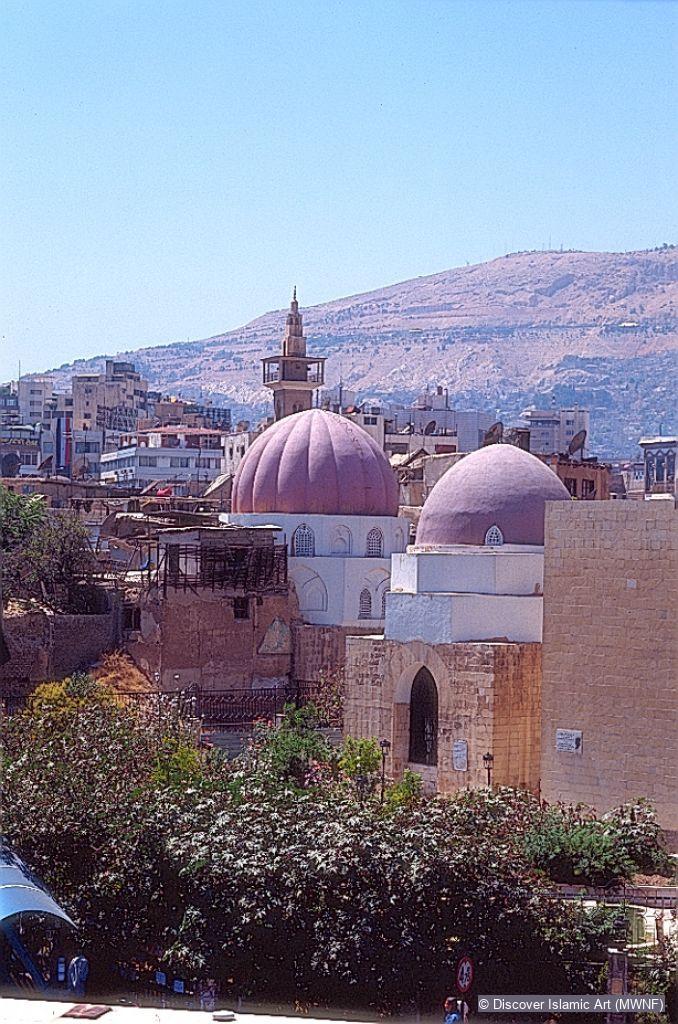 A grand madrasa complex built by the 'Lady of Damascus', Khatun Sitt al-Sham bint Ayyub. Its layout includes a free-standing minaret in a rectangular courtyard with a water-basin and an arcade in front of the entrance to the tomb chamber. This shows a high degree of flexibility and change from the original madrasa layout brought in from Seljuq Iraq and Iran. The impressive cross-vaulted tomb chamber, which holds unique surviving wall-to-wall painted and pierced stucco work, contains three original coffins. They are well preserved and include important inscriptions on the deaths of ruling members of the Ayyubid dynasty buried there.
