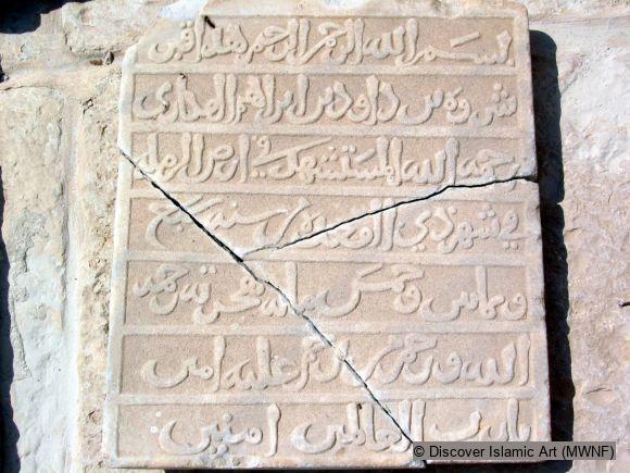 “In the Name of God, the Most Gracious, the Most Merciful. This is what has been endowed and made into a religious bequest by Amir al-Sayyad al-Ajal […] al Daula and its support Dhu Saramir [?], the father of Nasr Ahmad Ibn Marwan. May God reward his good deeds and bless these two adjoining houses, their delimitations, and their rights for all who come from Diyar Bakr as is (mentioned) in the book and the endowment, and those who change it or replace it, may the curse of God be upon them. This is on the [date] Ramadan, in the year 445.”