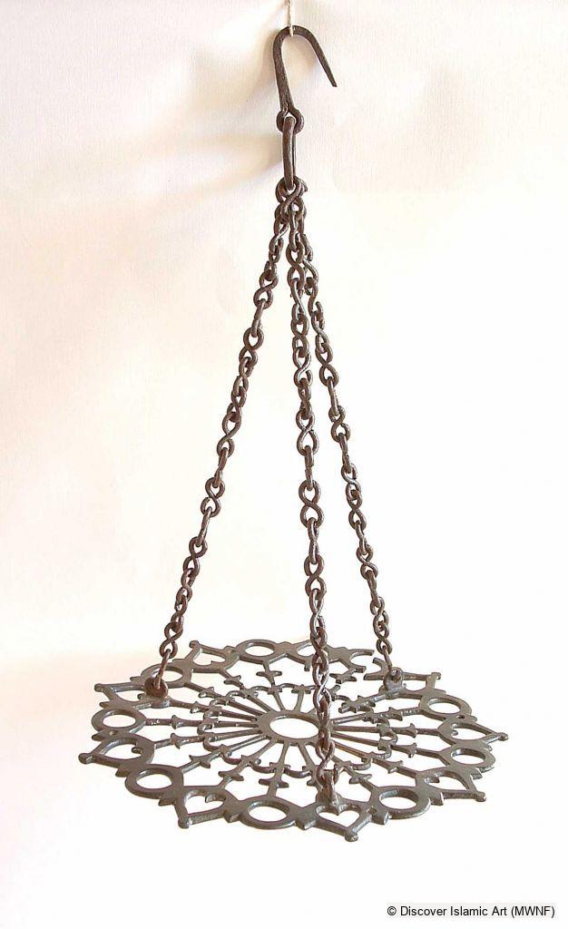 Inspired by Byzantine art, this piece was one of a group of eight used in the Great Mosque of Kairouan. The Muslim artist has replaced the cross in Byzantine and Coptic chandeliers with a trilobed fleuron and some geometric motifs consistent with the Islamic creed.